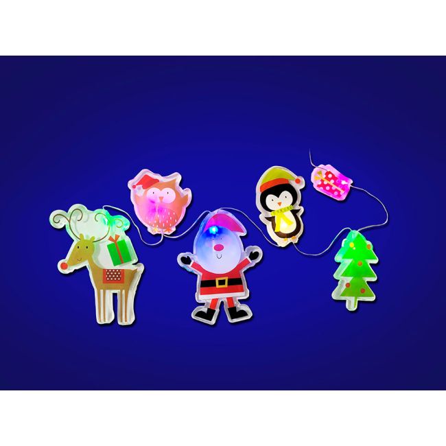 Light up gel window stickers feature cute and colour Christmas characters. Simply attach to any clear window or mirrored surface. Requires 2 x CR2032 batteries (included). H15 x W30cm approx. Design may vary.