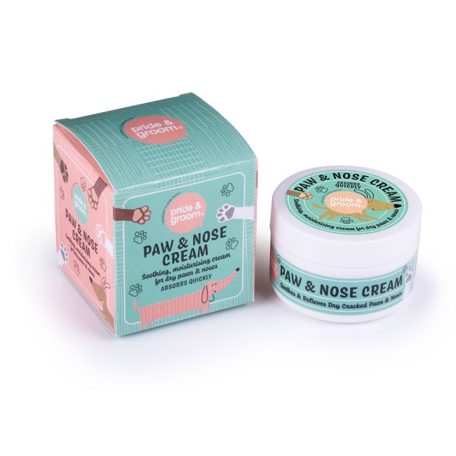 Give your pooch a pawsome pamper, with the Paw & Nose cream. It soothes & relieves dry and cracked paws & noses. With vitamin E & aloe vera extract. 50g.